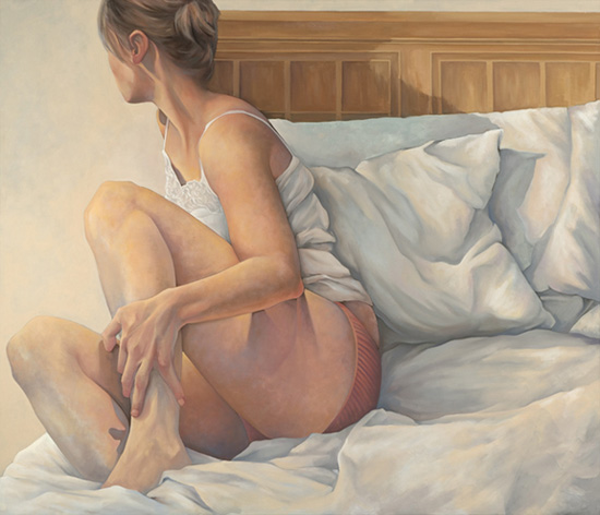 ''Art, for me, is deeply personal and I often describe my paintings as autobiographical. The greatest turning point in my work came when I found myself at home as a new mother. I began to paint the emotions I experienced everyday in order to create relatable images of my particular time and place. In my paintings, I stress ambivalence, isolation, and exhaustion but also the private, restful moments of peace that we all treasure in our hectic lives.