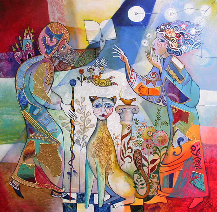Each theme, each story is a pretext for building a fairytale universe where the slightest detail has its own importance and is a sort of key. For the deciphering to be richer, more complete,one must move from one side of the painting to the other, find clues, admittedly, but also accept to be immersed in the narrative.